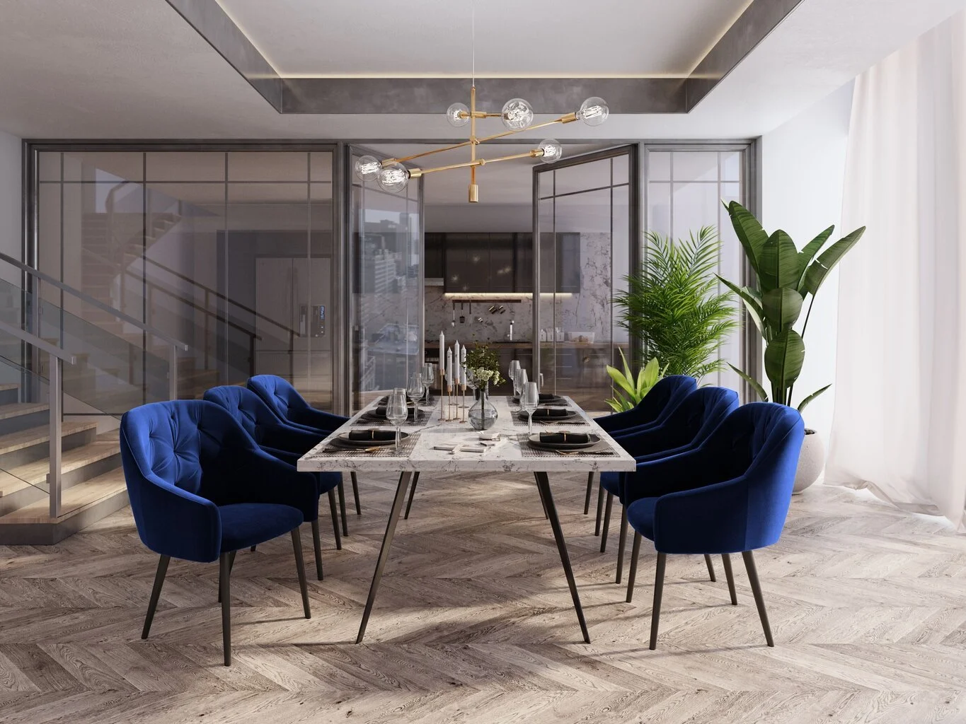 Kaikki nämä modernien huonekalujen ominaisuudet vahvistavat sen tosiasian, että tämän tyylin tuotteet ovat yksinkertaisia ja samalla erittäin yleisiä. Joten ne on helppo sijoittaa kaikenkokoisiin huoneisiin. 4-tuolisetti Milo Casa Luisa, kirkkaan sininen pitää niistä, jotka haluavat luoda minimalistisen ja tilavan tilan, jossa on kunnollinen ja raikas luonto.