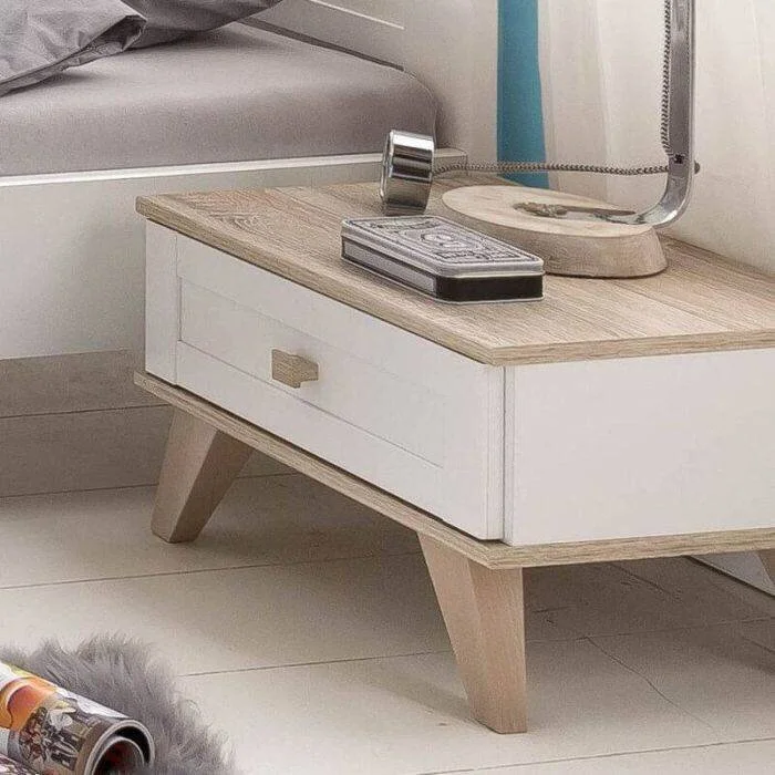 Kaikki nämä modernien huonekalujen ominaisuudet vahvistavat sen tosiasian, että tämän tyylin tuotteet ovat yksinkertaisia ja samalla erittäin yleisiä. Joten ne on helppo sijoittaa kaikenkokoisiin huoneisiin. VICTOR B03697 YÖPÖYTÄ, VALKOINEN/TAMMI#Ns pitää niistä, jotka haluavat luoda minimalistisen ja tilavan tilan, jossa on kunnollinen ja raikas luonto.
