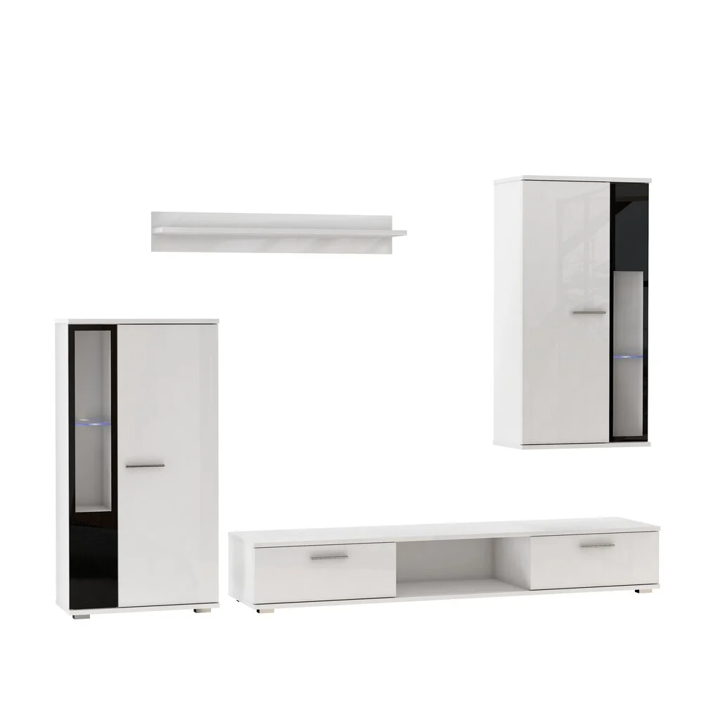 Kaikki nämä modernien huonekalujen ominaisuudet vahvistavat sen tosiasian, että tämän tyylin tuotteet ovat yksinkertaisia ja samalla erittäin yleisiä. Joten ne on helppo sijoittaa kaikenkokoisiin huoneisiin. Kaappikokonaisuus olohuoneeseen Leon 2 , matta valkoinen/musta pitää niistä, jotka haluavat luoda minimalistisen ja tilavan tilan, jossa on kunnollinen ja raikas luonto.