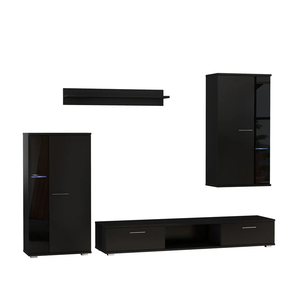 Levyn yläkerros peitetään usein erityisellä kalvolla, joka varmistaa huonekalun lujuuden. Viimeisimpien tuotantoteknologioiden avulla nämä laatat voivat olla kosteudenkestäviä, minkä vuoksi nämä materiaalit eroavat monipuolisuudestaan ja sopivat mihin tahansa huoneeseen. Kaappikokonaisuus olohuoneeseen Leon, musta matta löytää varmasti paikan kodistasi!