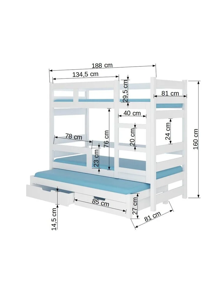 Niille, jotka etsivät toiminnallista vaihtoehtoa tai joiden lastenhuoneessa on vähän tilaa, tämä kerrossänky on ehdottomasti paras ratkaisu. Ajattoman muotoilunsa ansiosta valkoinen kerrossänky sulautuu helposti mihin tahansa vauvan- tai lastenhuoneeseen.