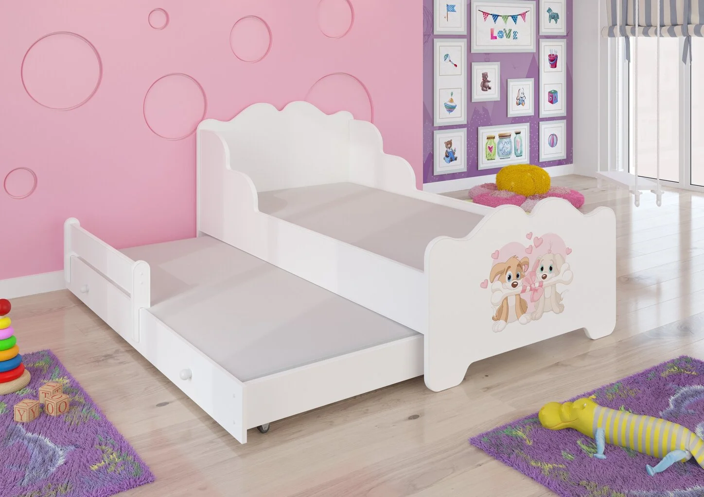 Levyn yläkerros peitetään usein erityisellä kalvolla, joka varmistaa huonekalun lujuuden. Viimeisimpien tuotantoteknologioiden avulla nämä laatat voivat olla kosteudenkestäviä, minkä vuoksi nämä materiaalit eroavat monipuolisuudestaan ja sopivat mihin tahansa huoneeseen. Lasten sänky Ximena II Sleeping Princess 160x80cm + Patja löytää varmasti paikan kodistasi!