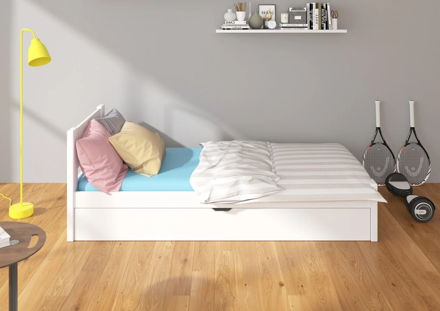 Yhden hengen sänky sänkylaatikolla, johon mahtuu leluja ja muita tavaroita vuodevaatteiden lisäksi. Minimalistinen muotoilu, kompakti sänky sopii täydellisesti minkä tahansa lastenhuoneen sisustukseen.