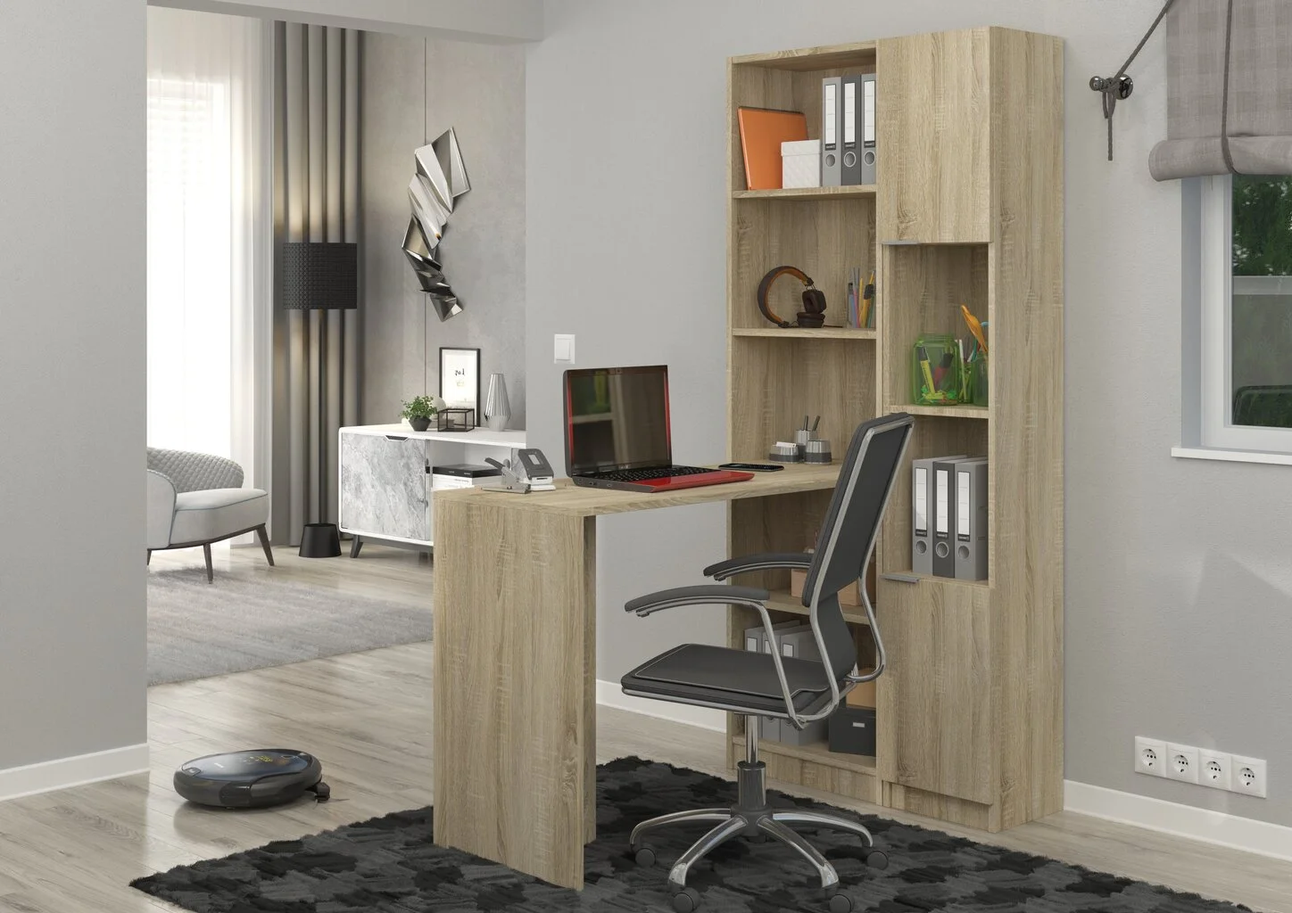 Kompaktit ja käytännölliset huonekalut on helppo nostaa ja siirtää. Joskus se voidaan koota, mikä vapauttaa vielä enemmän tilaa. Tästä syystä on mahdollista luoda minimalistinen ja ergonominen ympäristö, jossa on tilaa muille suunnitteluratkaisuille ja mukavalle käsittelylle. Toisin sanoen ADRK Furniture Paul II -kirjoituspöytä + 2 x hylly, tammi sopii helposti luotavaan ympäristöön eikä häiritse viime hetken päätöksiä.