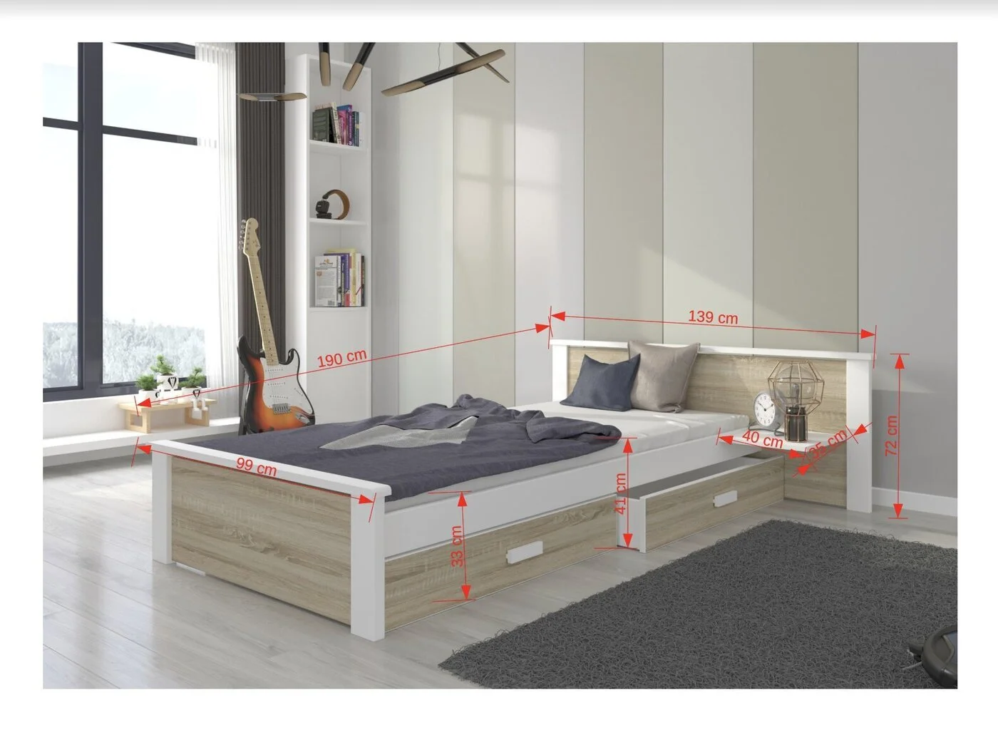 Levyn yläkerros peitetään usein erityisellä kalvolla, joka varmistaa huonekalun lujuuden. Viimeisimpien tuotantoteknologioiden avulla nämä laatat voivat olla kosteudenkestäviä, minkä vuoksi nämä materiaalit eroavat monipuolisuudestaan ja sopivat mihin tahansa huoneeseen. Pinnasänky hyllyllä Aldex Shelf 190x96x72cm + patja löytää varmasti paikan kodistasi!