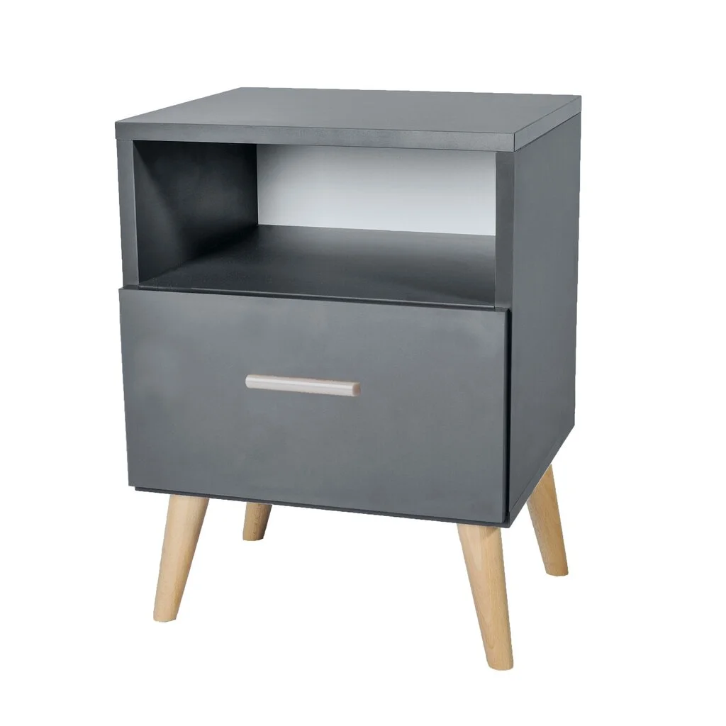 - Yöpöytä, jossa yksi laatikko ja yksi avoin hylly;
