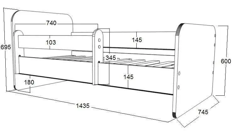 - Sängyn reunat on pyöristetty, jotta lapsi ei loukkaantuisi.