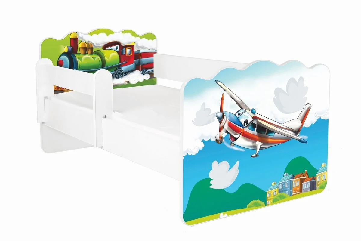 Levyn yläkerros peitetään usein erityisellä kalvolla, joka varmistaa huonekalun lujuuden. Viimeisimpien tuotantoteknologioiden avulla nämä laatat voivat olla kosteudenkestäviä, minkä vuoksi nämä materiaalit eroavat monipuolisuudestaan ja sopivat mihin tahansa huoneeseen. Lasten sänky patjalla ALEX 60 140×70 cm, irrotettavalla suojakaiteella löytää varmasti paikan kodistasi!