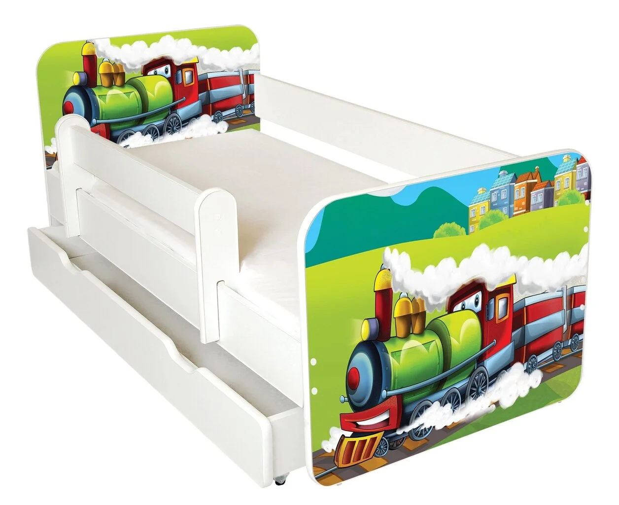 - Sängyn reunat on pyöristetty, jotta lapsi ei loukkaantuisi.