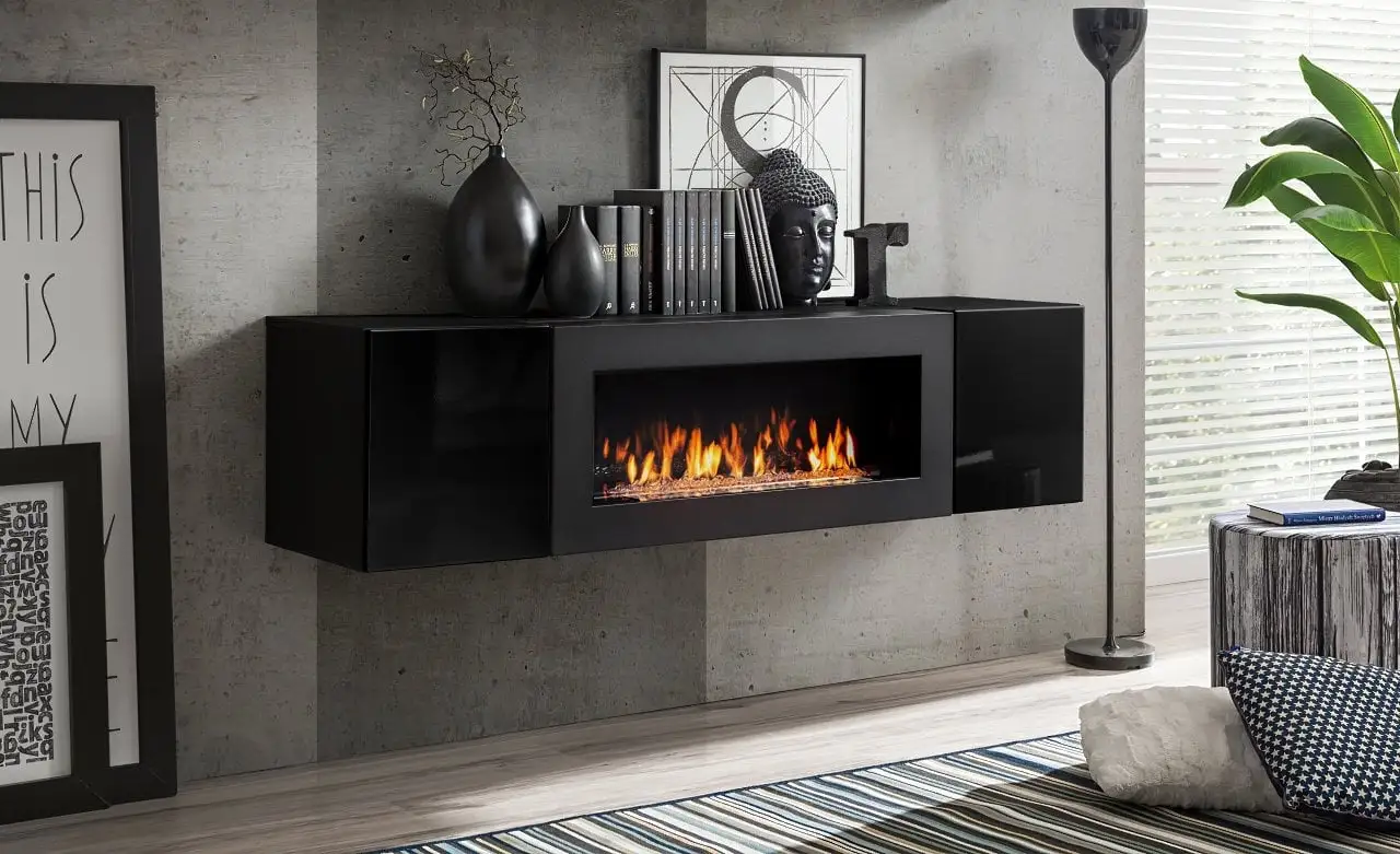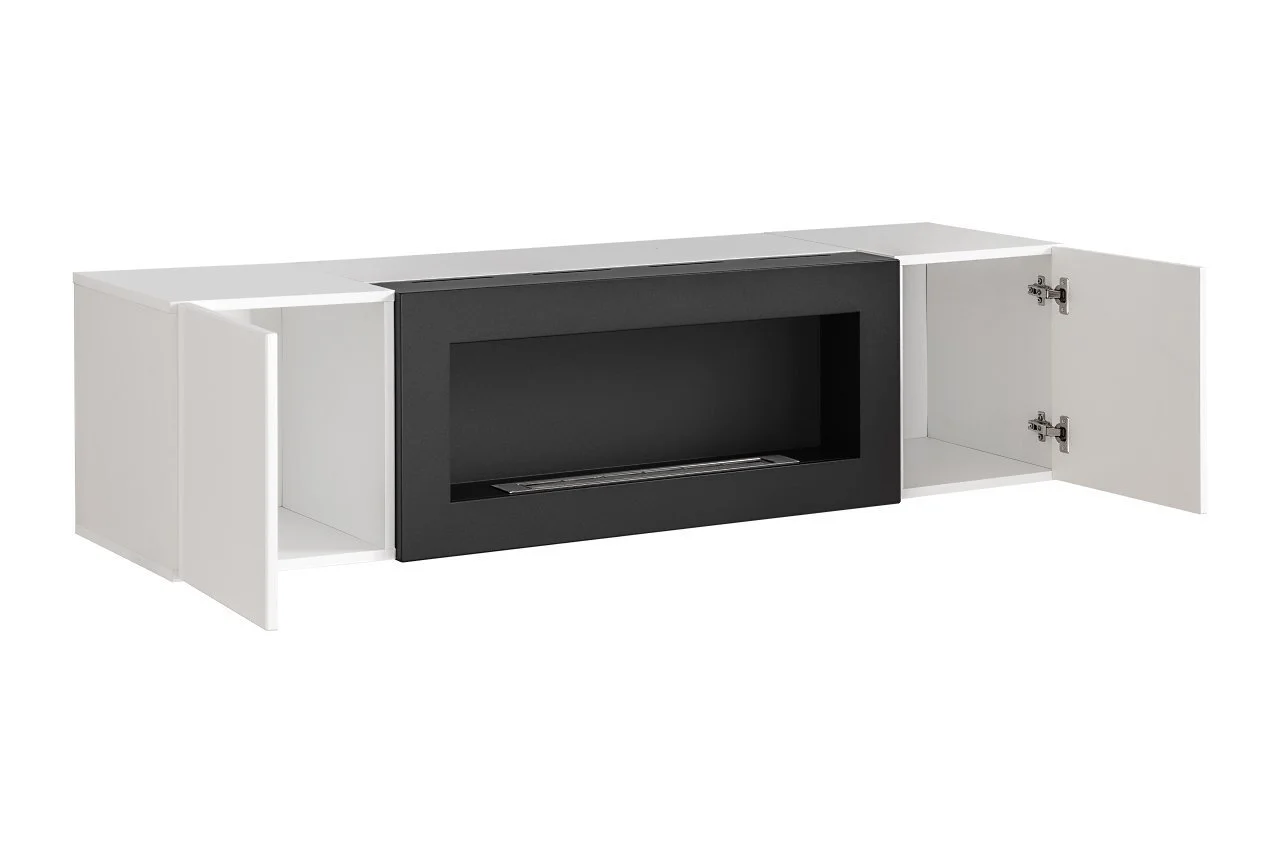 - Nykyaikainen ja näyttävä kaappi / TV-taso, jossa on kaksi ovea sekä biotakka;