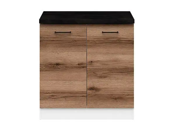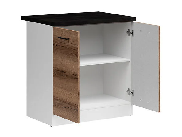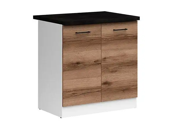 Levyn yläkerros peitetään usein erityisellä kalvolla, joka varmistaa huonekalun lujuuden. Viimeisimpien tuotantoteknologioiden avulla nämä laatat voivat olla kosteudenkestäviä, minkä vuoksi nämä materiaalit eroavat monipuolisuudestaan ja sopivat mihin tahansa huoneeseen. BRW Junona Line 2D 80, valkoisen /ruskean värinen Keittiökaappi löytää varmasti paikan kodistasi!