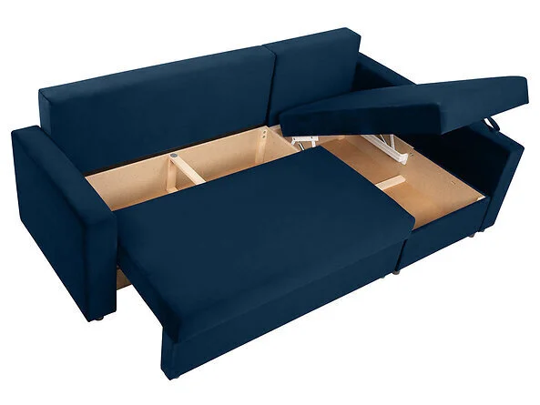 Yksi tämän huonekalun ilmeisimmistä eduista on tilansäästö: niin kauan kuin huonekaluja ei pureta, se vie huomattavasti vähemmän tilaa. Tästä syystä tällä toiminnolla varustetut huonekalut valitsevat useimmiten ne, joiden on laskettava huolellisesti jokainen vapaa tuuma. BRW Przemek IV pehmeä kulmasohva, sininen sopii erinomaisesti myös suurempiin tiloihin: joten siellä on enemmän tilaa muille yksityiskohdille. Useimmissa tämän tyyppisissä huonekaluissa on liinavaatelaatikko sisällä – näin tavaroiden säilytysongelma ratkeaa taas.