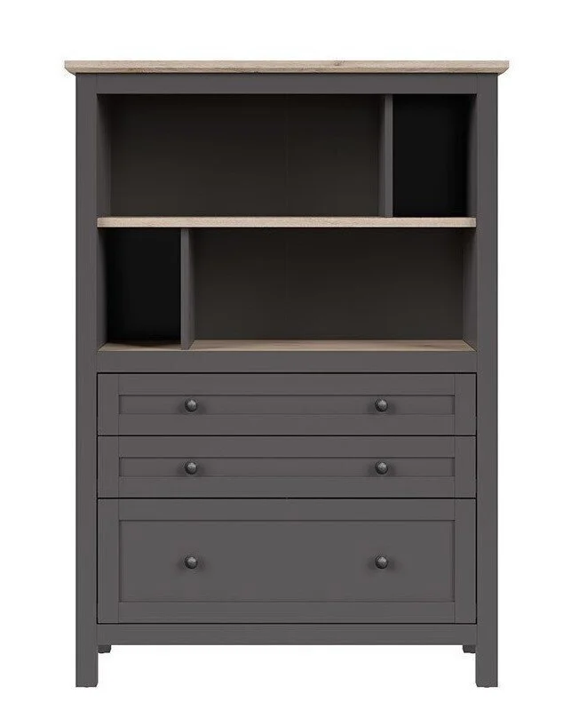 Mitä yksinkertaisempi ja toimivampi huonekalu, sitä paremmin se sopii skandinaaviseen tyyliin. Jos haaveilet puhtaasta, tilavasta ja viihtyisästä ilmapiiristä, Hylly BRW Bocage 3S, harmaa/tammi on yksi parhaista valinnoista.