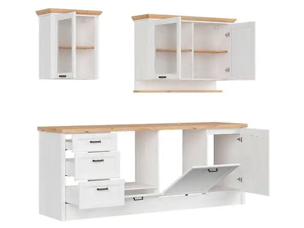 Levyn yläkerros peitetään usein erityisellä kalvolla, joka varmistaa huonekalun lujuuden. Viimeisimpien tuotantoteknologioiden avulla nämä laatat voivat olla kosteudenkestäviä, minkä vuoksi nämä materiaalit eroavat monipuolisuudestaan ja sopivat mihin tahansa huoneeseen. Jasmin 230 Keittiökalustesarja valkoinen löytää varmasti paikan kodistasi!