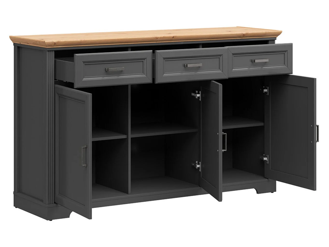Minimalismi kannattaa unohtaa klassiseen tyyliin ylellisillä yksityiskohdilla koristelluissa huonekaluissa, löytyy monia kaarevia muotoja ja muita edistyksellisiä ratkaisuja. Näitä huonekaluja luotaessa kaikki vivahteet harkitaan huolellisesti, joten tarkkaan katsomalla huomaat ylellisiä yksityiskohtia ja alkuperäisiä yksityiskohtia. Tämä on yksi syistä, miksi klassisen tyylin huonekaluista on tulossa sisustuksen merkittävin yksityiskohta. Halutessasi Lipasto BRW Jasmin, harmaa/ruskea voi sulautua kotisi tunnelmaan täsmälleen samalla tavalla.