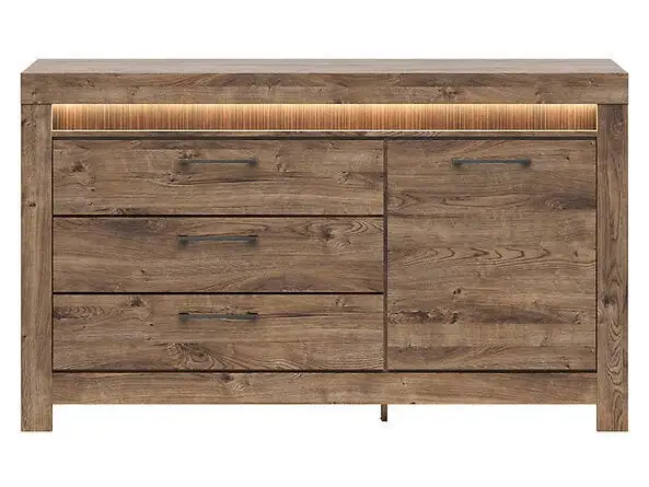 Levyn yläkerros peitetään usein erityisellä kalvolla, joka varmistaa huonekalun lujuuden. Viimeisimpien tuotantoteknologioiden avulla nämä laatat voivat olla kosteudenkestäviä, minkä vuoksi nämä materiaalit eroavat monipuolisuudestaan ja sopivat mihin tahansa huoneeseen. Lipasto BRW Torin 1D3S, ruskea löytää varmasti paikan kodistasi!