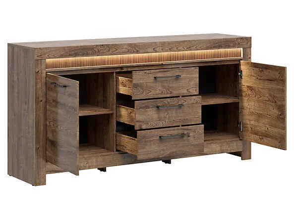 Levyn yläkerros peitetään usein erityisellä kalvolla, joka varmistaa huonekalun lujuuden. Viimeisimpien tuotantoteknologioiden avulla nämä laatat voivat olla kosteudenkestäviä, minkä vuoksi nämä materiaalit eroavat monipuolisuudestaan ja sopivat mihin tahansa huoneeseen. Lipasto BRW Torin 2D3S, ruskea löytää varmasti paikan kodistasi!