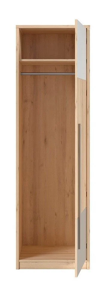 Kompaktit ja käytännölliset huonekalut on helppo nostaa ja siirtää. Joskus se voidaan koota, mikä vapauttaa vielä enemmän tilaa. Tästä syystä on mahdollista luoda minimalistinen ja ergonominen ympäristö, jossa on tilaa muille suunnitteluratkaisuille ja mukavalle käsittelylle. Toisin sanoen Namek I -vaatekaappi, valkoinen kiiltävä/pyökki/harmaa sopii helposti luotavaan ympäristöön eikä häiritse viime hetken päätöksiä.