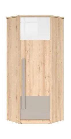Kompaktit ja käytännölliset huonekalut on helppo nostaa ja siirtää. Joskus se voidaan koota, mikä vapauttaa vielä enemmän tilaa. Tästä syystä on mahdollista luoda minimalistinen ja ergonominen ympäristö, jossa on tilaa muille suunnitteluratkaisuille ja mukavalle käsittelylle. Toisin sanoen Namek -nurkkavaatekaappi, valkoinen kiiltävä/pyökki/harmaa sopii helposti luotavaan ympäristöön eikä häiritse viime hetken päätöksiä.