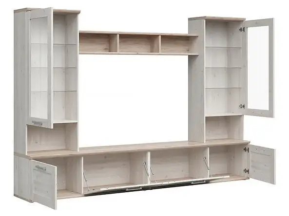 - setti sisältää: 2 vitriiniä, 2 pöytää ja seinähyllyn;