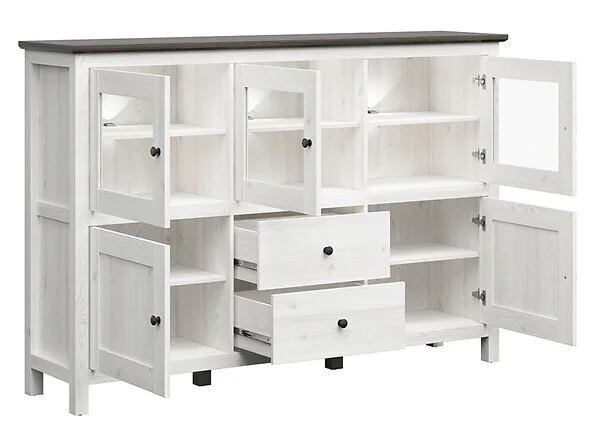 Levyn yläkerros peitetään usein erityisellä kalvolla, joka varmistaa huonekalun lujuuden. Viimeisimpien tuotantoteknologioiden avulla nämä laatat voivat olla kosteudenkestäviä, minkä vuoksi nämä materiaalit eroavat monipuolisuudestaan ja sopivat mihin tahansa huoneeseen. Showcase BRW Hesen 3W2D2S, harmaa/ruskea. löytää varmasti paikan kodistasi!