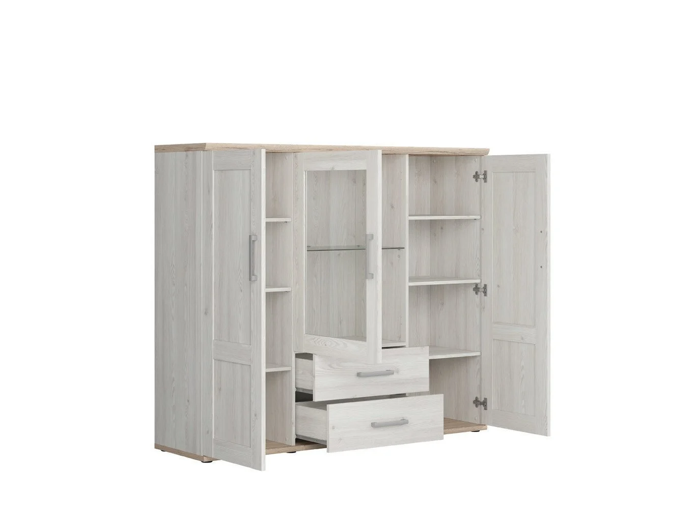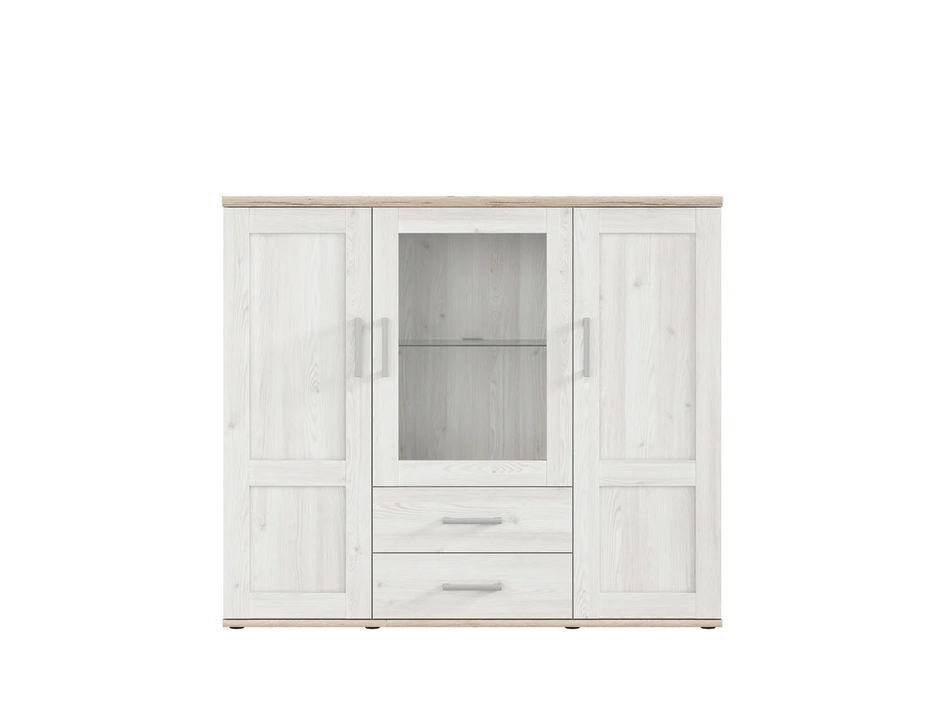 - – Ovet ja runko ovat hieman valkoisia (valkaistut). Ylempi ja alempi kalustelevy: oak-san remo (vaaleanruskea väri). Mallistoa korostavat ovien kehykset.
