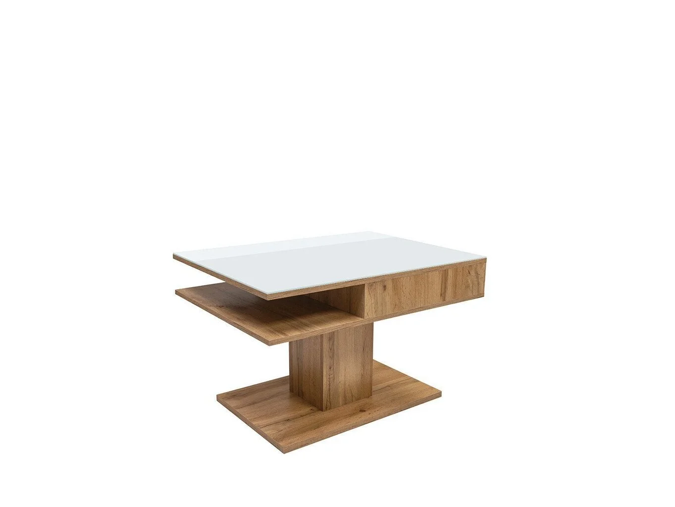 Levyn yläkerros peitetään usein erityisellä kalvolla, joka varmistaa huonekalun lujuuden. Viimeisimpien tuotantoteknologioiden avulla nämä laatat voivat olla kosteudenkestäviä, minkä vuoksi nämä materiaalit eroavat monipuolisuudestaan ja sopivat mihin tahansa huoneeseen. Sohvapöytä BRW Campo, tammi / valkoinen. löytää varmasti paikan kodistasi!