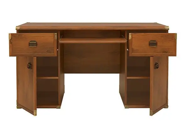 Opiskelijahuoneen sisustuksessa on tärkeää valita mukava pöytä. Jos valitset työpöydän Indiana-kokoelmasta, luot lapsellesi mukavan tilan. Kaikki mitä tarvitset ja haluat, on aina tuntea olosi mukavaksi työskentelyn aikana, 2 käytännöllistä laatikkoa, jotka sijaitsevat pöydän molemmilla puolilla. Yläkansi on peitetty erityisellä kovalla kalvolla, mikä tekee pöydästä kestävämmän naarmuilta ja muilta mekaanisilta vaurioilta. Huonekalujen toimivuutta parantaa liukuva avautuva näppäimistöteline. Pöydässä on myös kaksi kaappia pöydän molemmilla sivuilla. Kaapissa on kaksi tilavaa hyllyä.