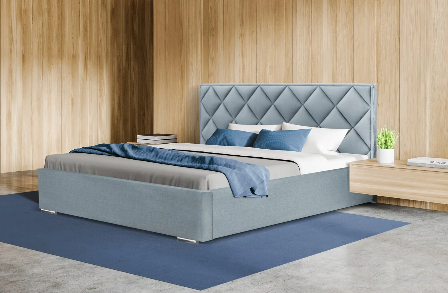 - Pehmeällä verhoilulla ja kuvakudoksella päällystetty sängyn runko luo ylellisen ilmeen;