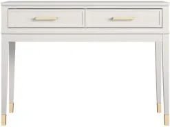 Lisää ylellisyyttä olohuoneeseesi Westerleigh- konsolilla. Westerleighissa on kaksi isoa laatikkoa, mihin mahtuu hyvin erilaisia tavaroita. Erilaiset koristeet, kuvakehykset jne. näyttävät hyvältä pöydällä. Luo omia yhdistelmiäsi! Tämä upea konsoli – huippuluokan aksentti jokaiseen kotiin. Saatavana valkoisena, harmaana tai mattamustana.