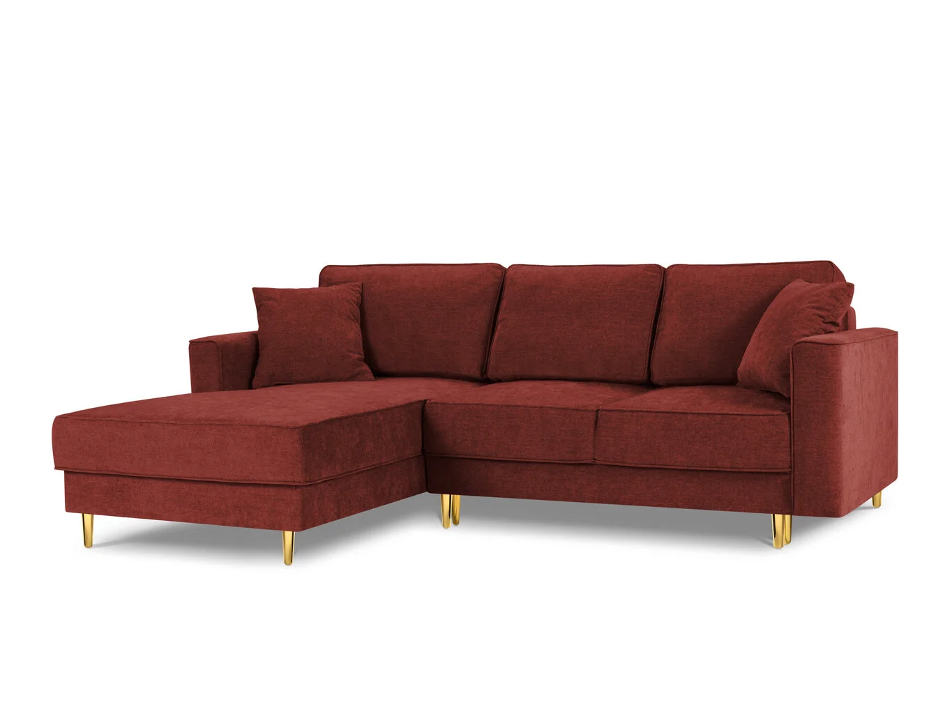 Mitä yksinkertaisempi ja toimivampi huonekalu, sitä paremmin se sopii skandinaaviseen tyyliin. Jos haaveilet puhtaasta, tilavasta ja viihtyisästä ilmapiiristä, Cosmopolitan Design Fano kulmasohva, punainen/kulta. on yksi parhaista valinnoista.