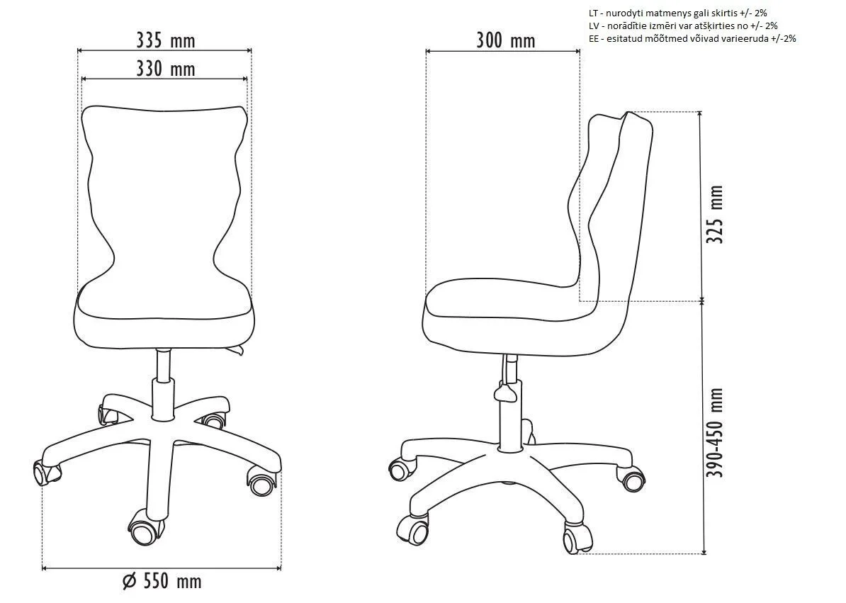 - Petit-tuolit on suunniteltu lapsille, ja niissä on ergonominen istuin, joka mukautuu käyttäjän pituuteen.