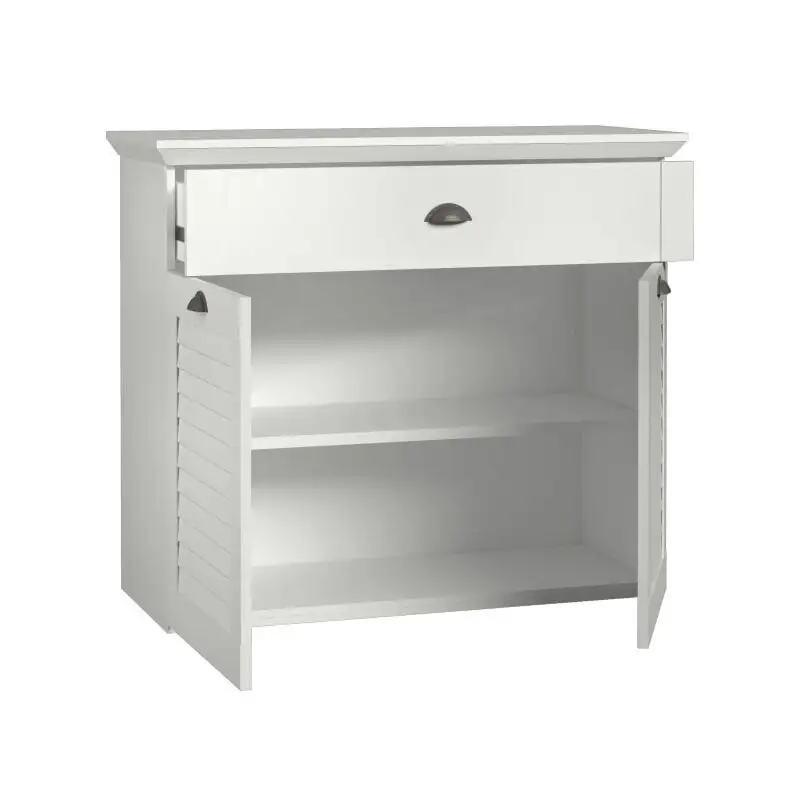 Levyn yläkerros peitetään usein erityisellä kalvolla, joka varmistaa huonekalun lujuuden. Viimeisimpien tuotantoteknologioiden avulla nämä laatat voivat olla kosteudenkestäviä, minkä vuoksi nämä materiaalit eroavat monipuolisuudestaan ja sopivat mihin tahansa huoneeseen. Marida-senkki, valkoinen löytää varmasti paikan kodistasi!