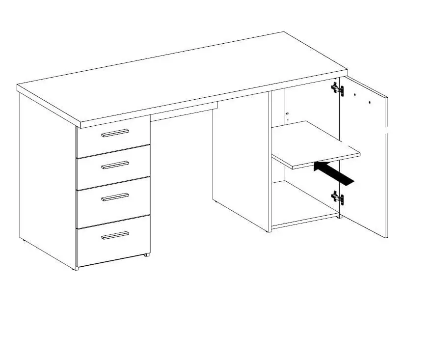 - 4 laatikkoa ja yksi ovellinen kaappi;