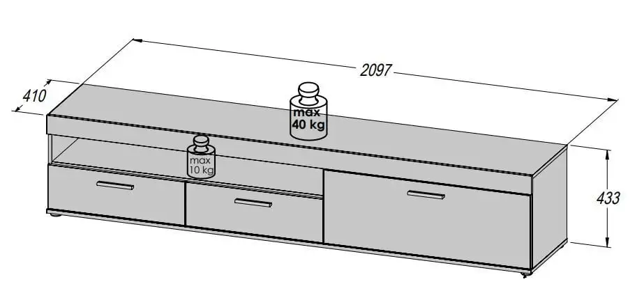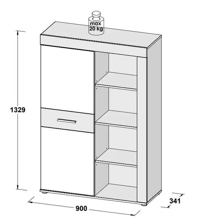 - Osan mitat: leveys – 300 cm, korkeus – 200,9 cm, syvyys – 41 cm;