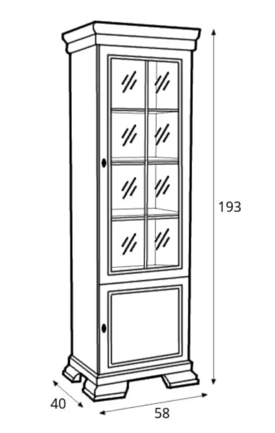 - Mitat: korkeus – 193 cm, leveys – 58 cm, syvyys – 40 cm.