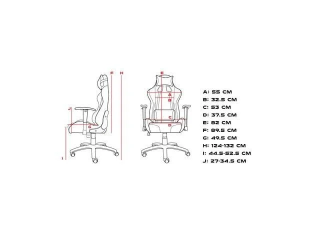 - Sėdimos dalies matmenys: aukštis 44,5-52,5 cm, plotis – 37,5 cm, gylis – 49,5 cm;