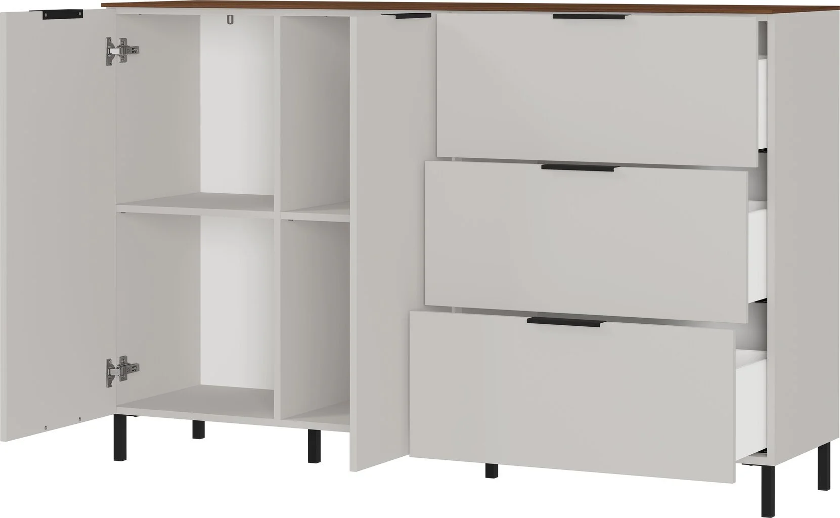 Levyn yläkerros peitetään usein erityisellä kalvolla, joka varmistaa huonekalun lujuuden. Viimeisimpien tuotantoteknologioiden avulla nämä laatat voivat olla kosteudenkestäviä, minkä vuoksi nämä materiaalit eroavat monipuolisuudestaan ja sopivat mihin tahansa huoneeseen. Kaappi California 1475, vaaleanharmaa/ruskea löytää varmasti paikan kodistasi!