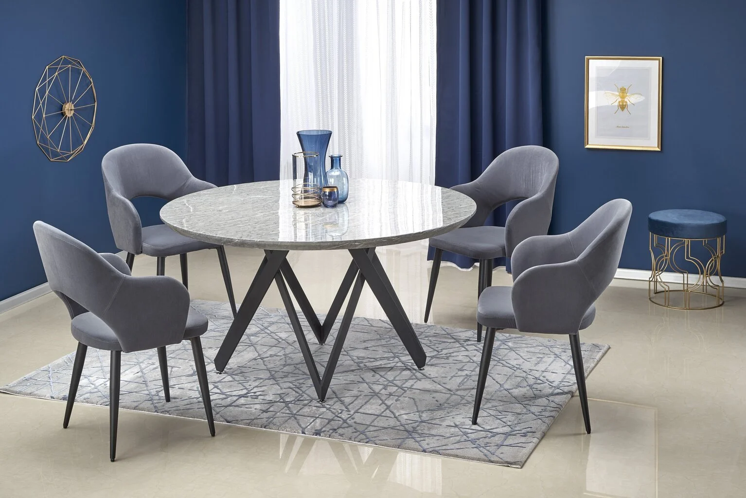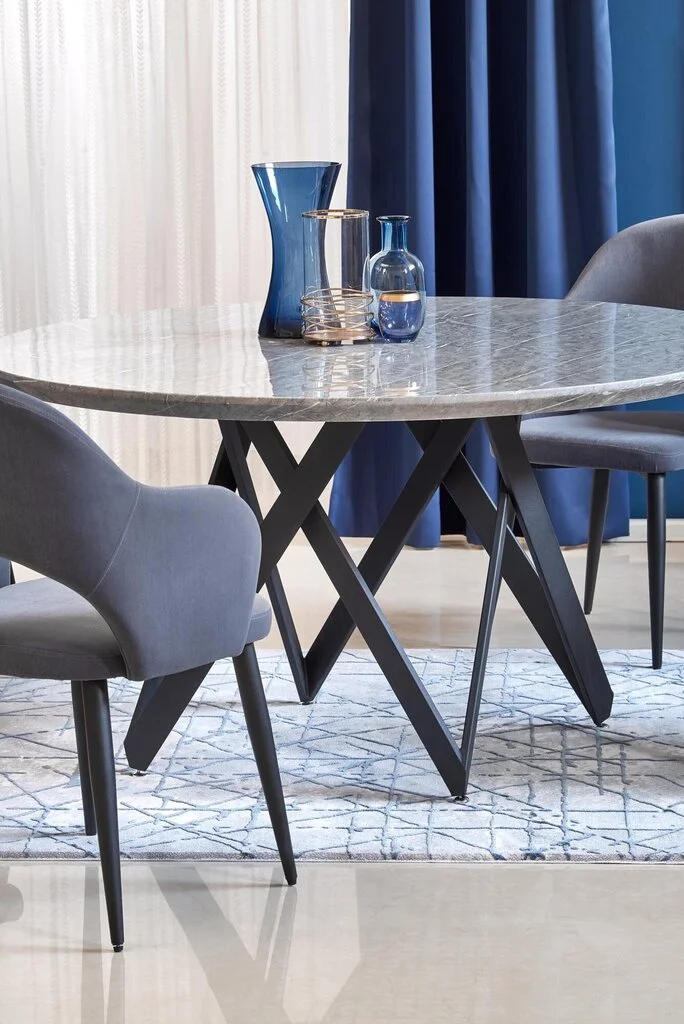 - Nykyaikaisen tyylinen, pyöreän mallinen pöytä.