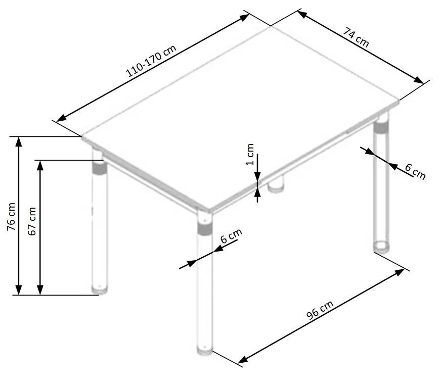 Sohvapöydän mitat: Pituus : 110-170 cm. Leveys : 74 cm. Korkeus : 76 cm.