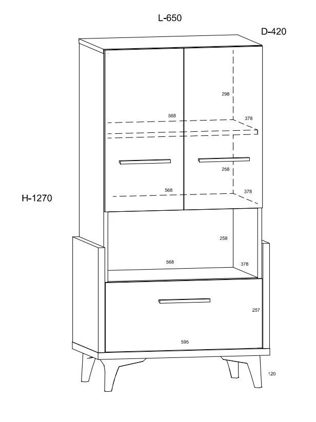 - 1 laatikolla hylly avoimella syvennyksellä;