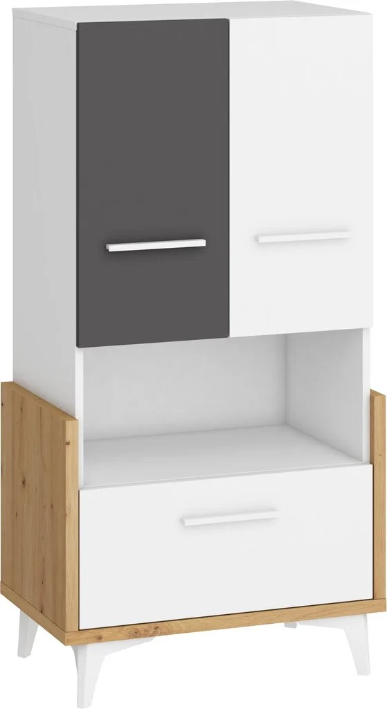 Levyn yläkerros peitetään usein erityisellä kalvolla, joka varmistaa huonekalun lujuuden. Viimeisimpien tuotantoteknologioiden avulla nämä laatat voivat olla kosteudenkestäviä, minkä vuoksi nämä materiaalit eroavat monipuolisuudestaan ja sopivat mihin tahansa huoneeseen. Hylly Meblocross Hey 15, valkoinen / tummanharmaa löytää varmasti paikan kodistasi!