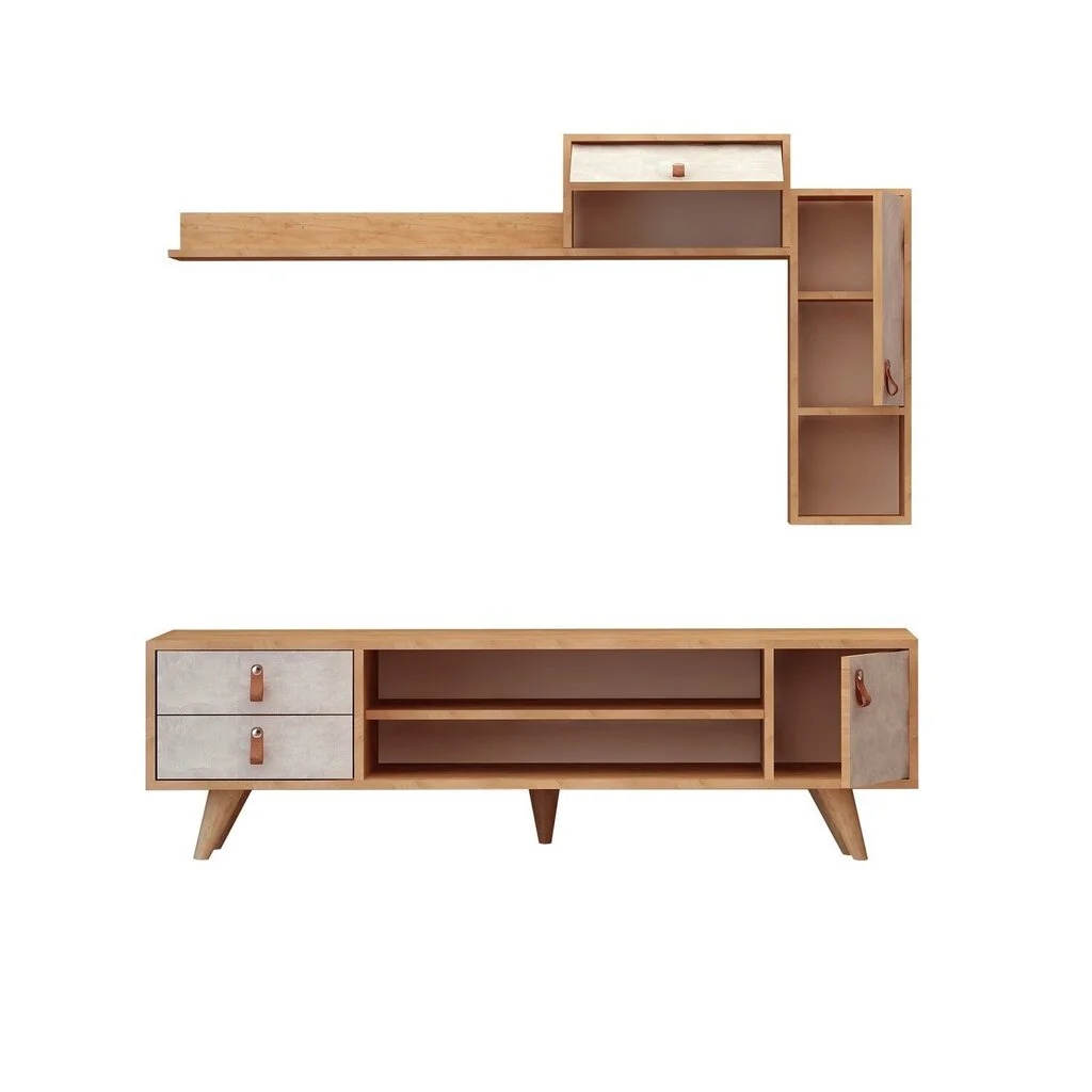 - setti sisältää TV-pöydän, seinäkaapin ja seinähyllyn;