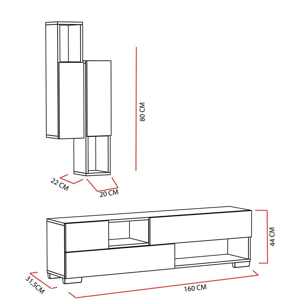 - Sisältää: 1 TV-pöytä, 2 seinähyllyä;