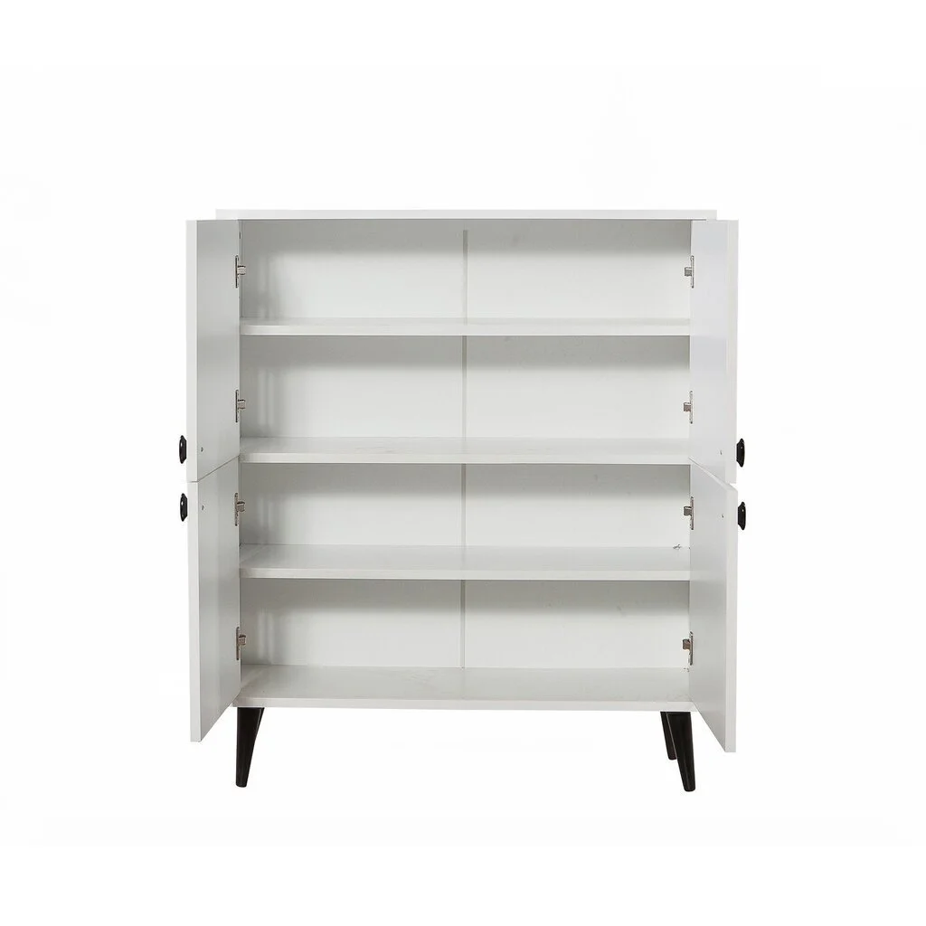 - Monitoiminen kaappi, jossa on 4 ovea, joiden takana on 4 hyllyä