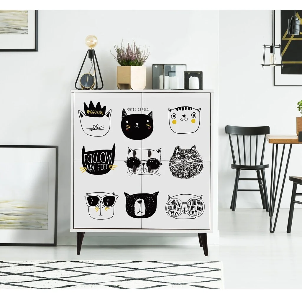 Kaikki nämä modernien huonekalujen ominaisuudet vahvistavat sen tosiasian, että tämän tyylin tuotteet ovat yksinkertaisia ja samalla erittäin yleisiä. Joten ne on helppo sijoittaa kaikenkokoisiin huoneisiin. Kaappi Kalune Design 869 (I), 111 cm, valkoinen/musta pitää niistä, jotka haluavat luoda minimalistisen ja tilavan tilan, jossa on kunnollinen ja raikas luonto.