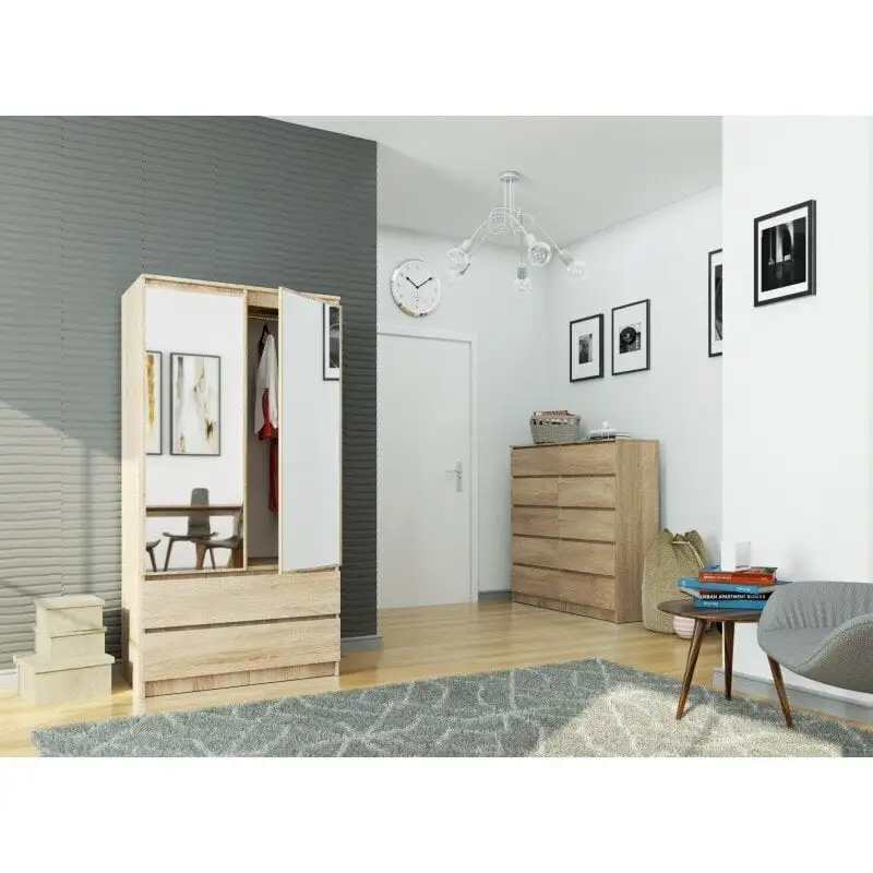 Levyn yläkerros peitetään usein erityisellä kalvolla, joka varmistaa huonekalun lujuuden. Viimeisimpien tuotantoteknologioiden avulla nämä laatat voivat olla kosteudenkestäviä, minkä vuoksi nämä materiaalit eroavat monipuolisuudestaan ja sopivat mihin tahansa huoneeseen. Kaappi NORE S90 peilillä, tammen sävy löytää varmasti paikan kodistasi!