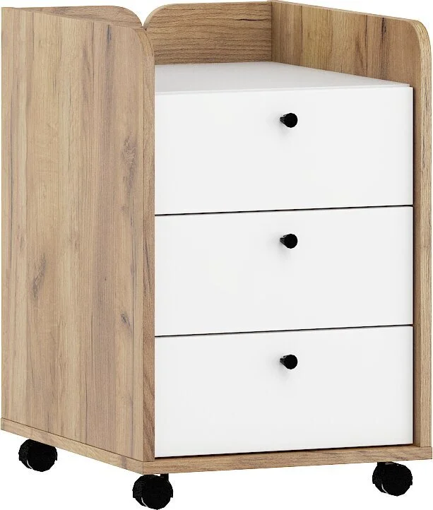- Moderni kaappi pyörillä kolmella laatikolla.