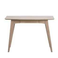 Hieno ja vahva skandinaaviseen tyyliin pöytä laatikolla, sopii täydellisesti olohuoneeseen tai käytävään! Pyöristetyt kulmat, jotka on peitetty valkoisella pigmentoidulla puuöljyllä, antavat pöydälle kauniin sävyn valkaistua tammea – Taulukko täydentää kodin tilaa, lisäämällä siihen nykyaikaisuutta ja mukavuutta!