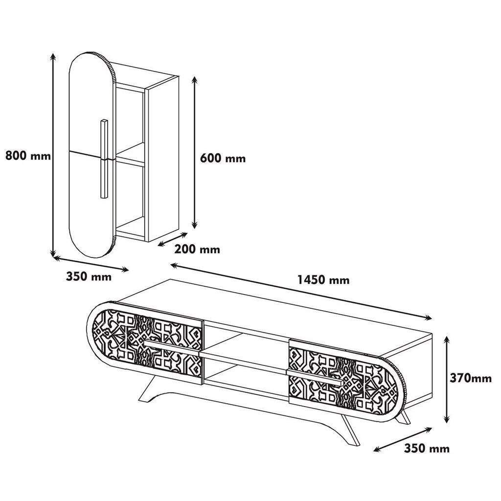 - Pakkaus sisältää: TV-pöytä ja seinähylly;